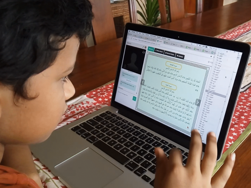 This course is designed for students who already know basic Arabic reading and want to recite the Quran fluently with proper Tajweed. It includes verse-by-verse recitation practice, correcting articulation errors, and applying rules like Qalqalah, Ikhfa, Idghaam, and Ghunna. Teachers provide line-by-line correction and regular assessments to enhance fluency, rhythm, and flow. This course enhances both recitation skill and spiritual connection.